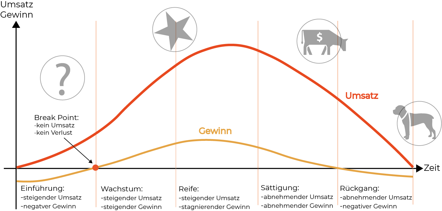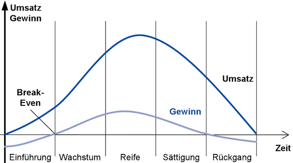 Das Produkt wird neu auf den Markt gebracht. Der Umsatz ist oft niedrig, während die Kosten für Marketing und Entwicklung hoch sind.die anderen Phasen