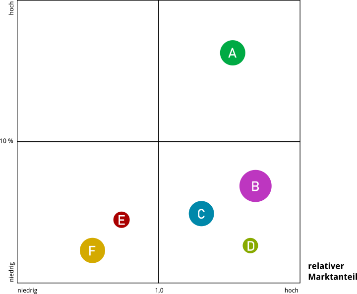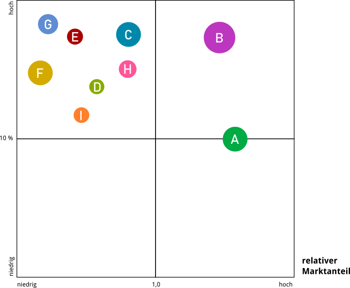| Feld | Marktwachstum | rel. Marktanteil | Produktlebenszyklus |