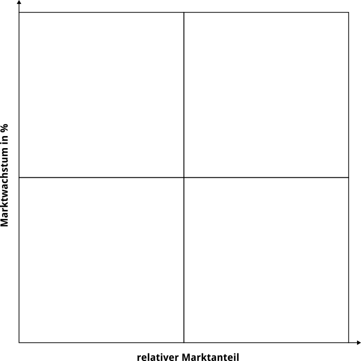 - y-Achse: Marktwachstum in %; x-Achse: relativer Marktanteil